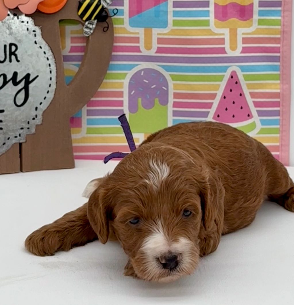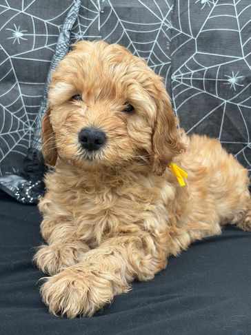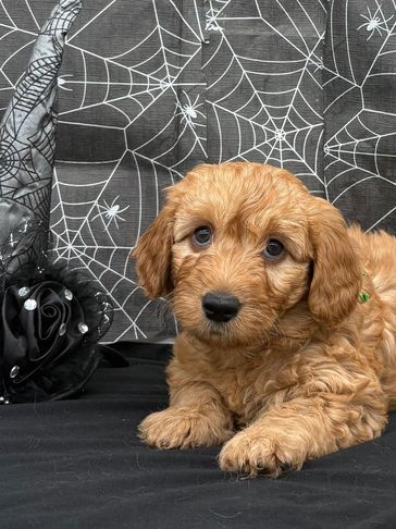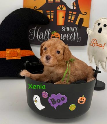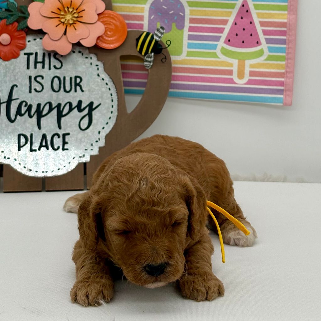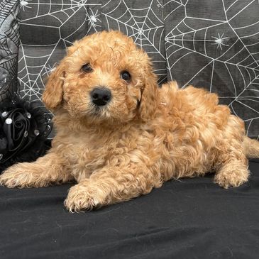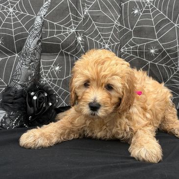Kate Spade “Katy” is a puppy from Pepper and Cyrus that we have added to our program. She is an apricot F2B mini that weighs 25 lbs.