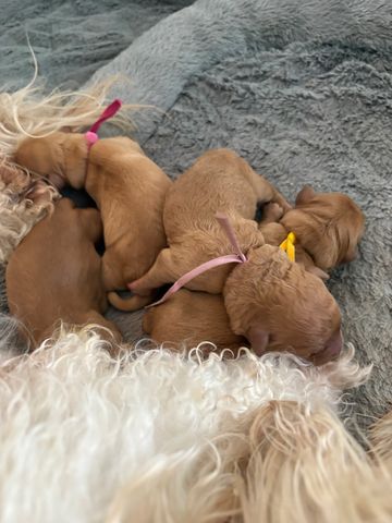 I’m excited to share that both of my breeding females, Katy went into heat. Katy just had 4 puppies 8.13.25. Luna is not having puppies this fall. All our puppies are reserved. We have just welcomed Izzy, a Cavalier King Charles Spaniel to our program. She will be a future Momma for Cavapoos.